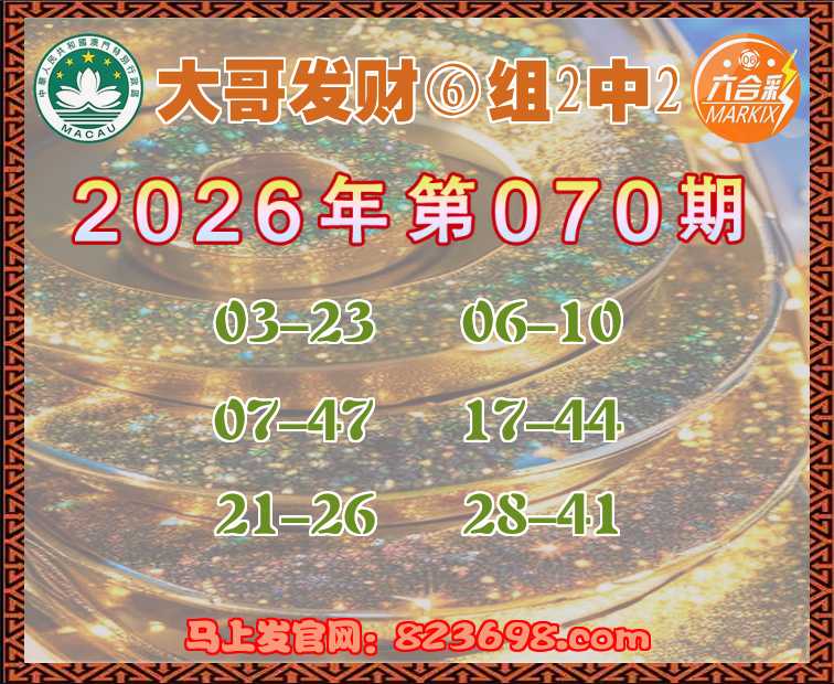 070期:『大哥发财』 🐁⑥组2中2🐁