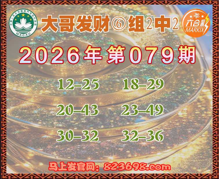 078期:『大哥发财』 🐁⑥组2中2🐁