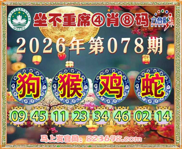078期:〖坐不重席〗 ☺️④肖⑧码☺️【狗猴蛇】开:鸡46